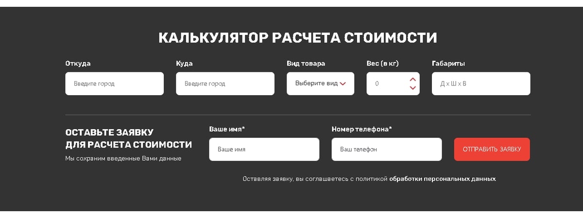 1. Добавлен калькулятор (форма обратной связи) для расчета стоимости на главную страницу и страницы услуг: